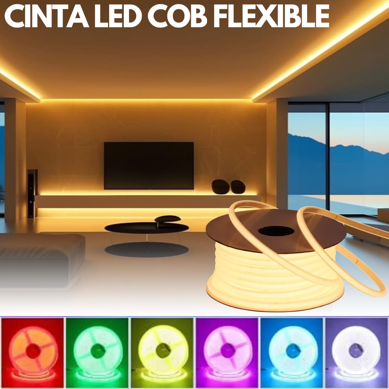 La Cinta LED COB Flexible de 100 metros es la solución ideal para proyectos de iluminación profesional, decoraciones comerciales, arquitectónicas y ambientes exteriores. Gracias a su tecnología COB (Chip On Board) ofrece una iluminación continua, uniforme y extremadamente brillante, sin puntos visibles, logrando un acabado limpio y moderno.