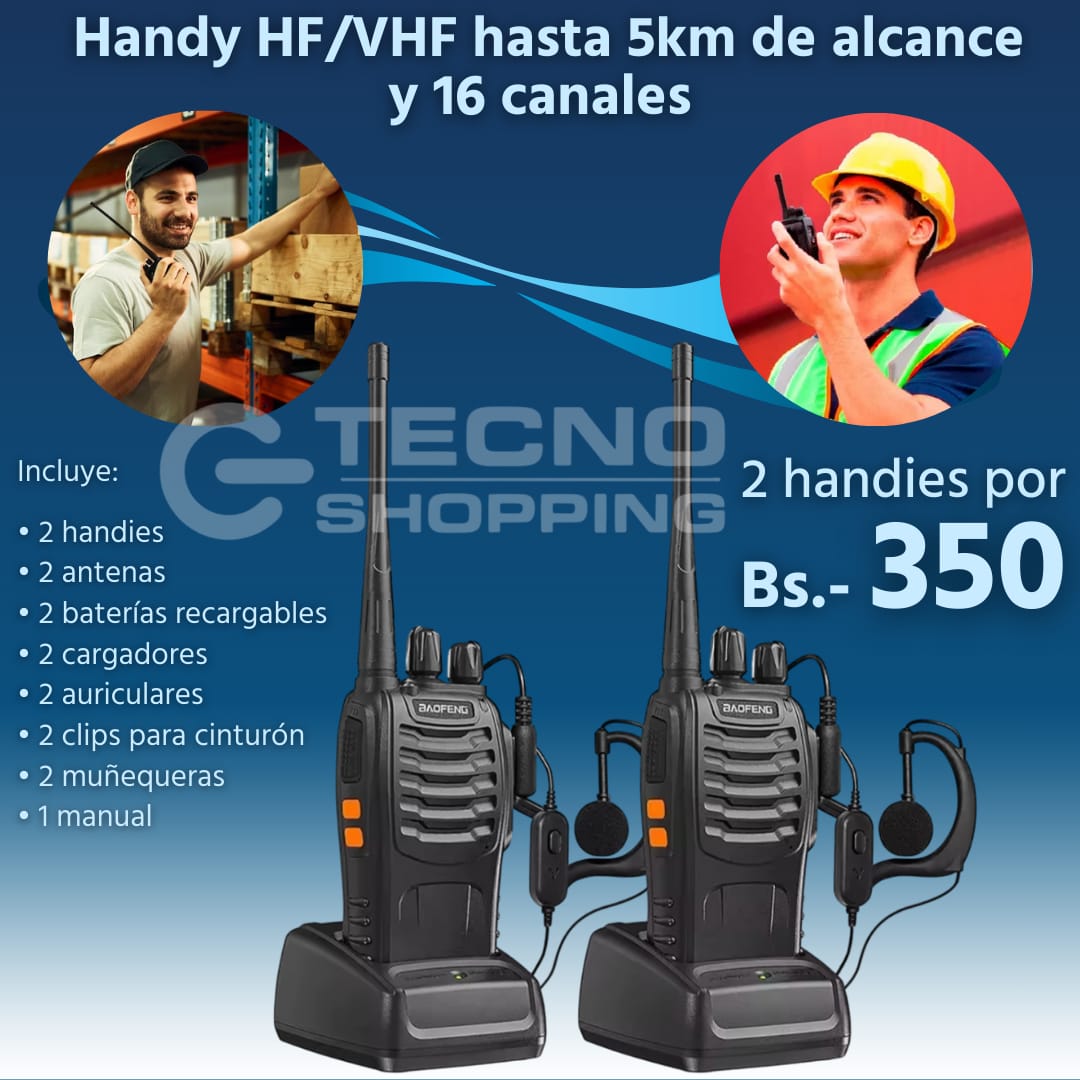 ¡Mantente conectado con tu equipo de trabajo de forma fácil y eficiente con este increíble Combo de Handies! Por solo 350 Bs, llévate dos handies de alta calidad, ideales para comunicaciones en oficinas, almacenes, trabajos en terreno y mucho más.