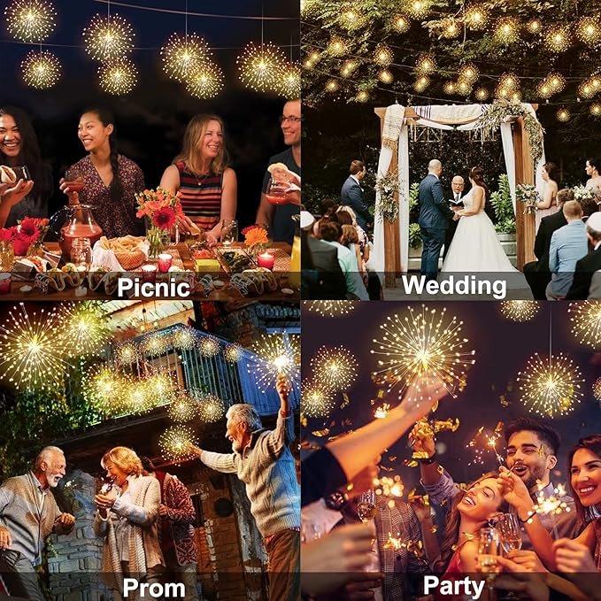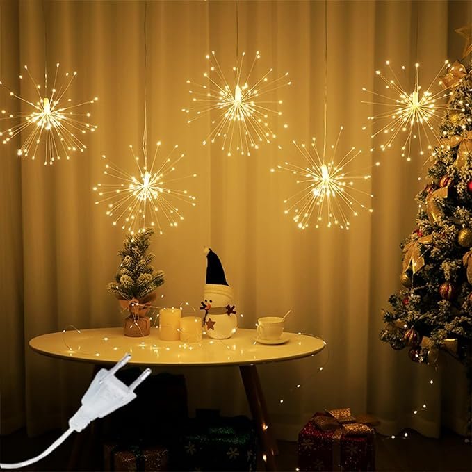 La cortina de luces LED fuegos artificiales Luz cálida es una opción espectacular para quienes desean crear un ambiente festivo y llamativo. Con un diseño que simula la explosión de fuegos artificiales, esta cortina es ideal para eventos especiales, celebraciones y decoraciones navideñas.