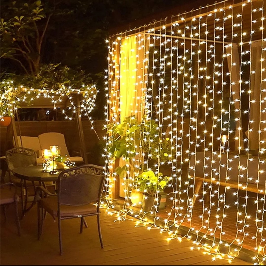 La cortina de luces LED de 3 metros de ancho con 12 caídas de 2 metros es una solución ideal para crear ambientes festivos y acogedores. Perfecta para decoraciones navideñas, eventos especiales o simplemente para realzar la estética de cualquier espacio.