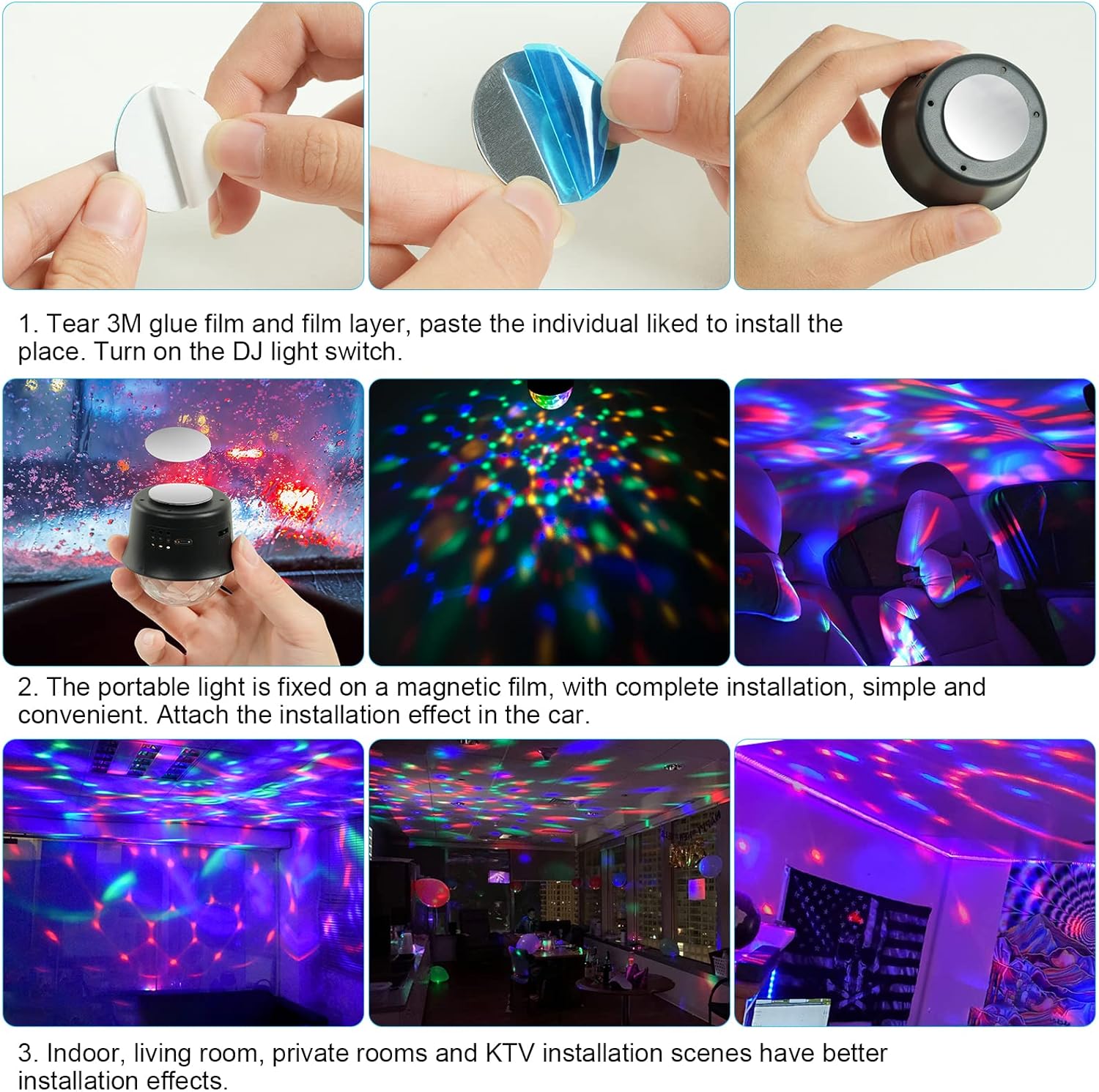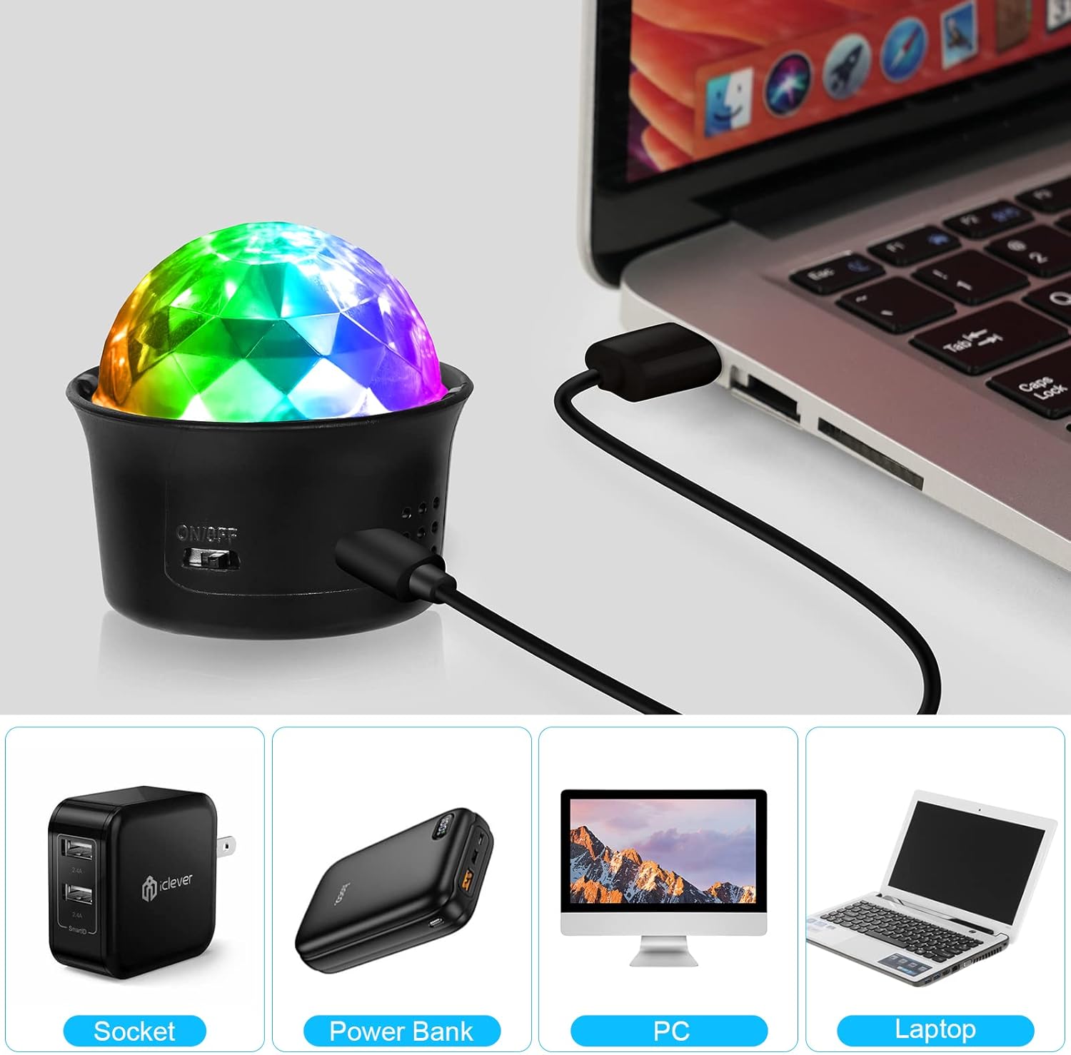 Mini juego de luces multicolor con batería recargable por USB, ideal para llevar y usar en cualquier lugar.