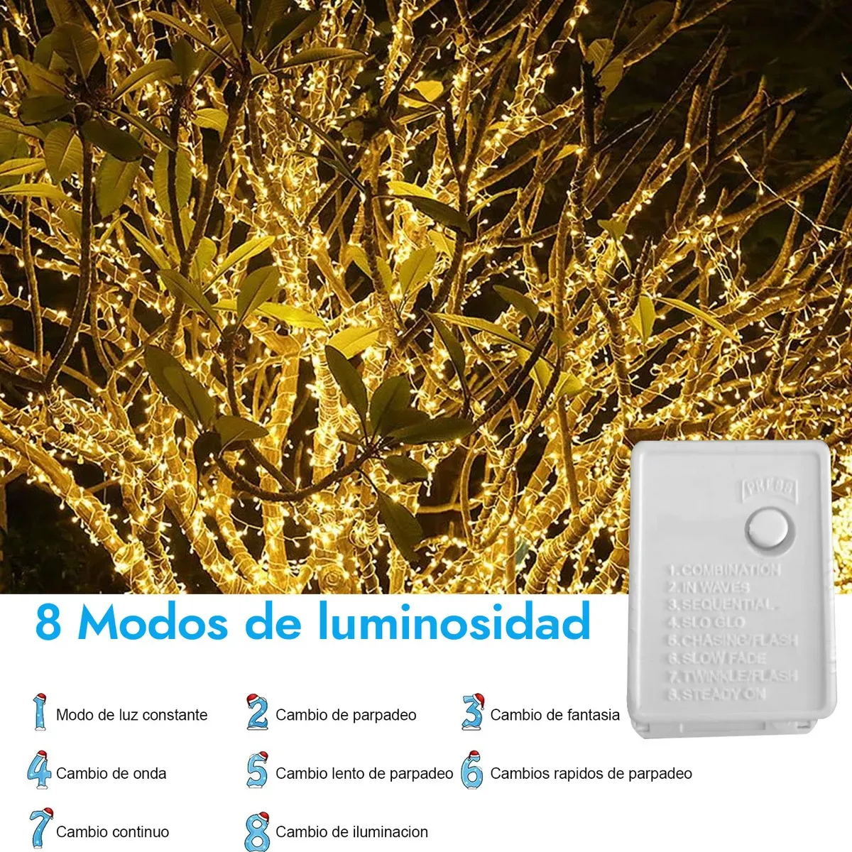 Con 150 LED que emiten una suave luz dorada, es perfecta para decorar árboles y espacios interiores o exteriores. Su diseño flexible permite adaptarse a cualquier forma, y su bajo consumo energético la convierte en una opción eficiente. Ideal para crear un ambiente festivo y acogedor.
